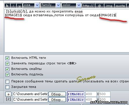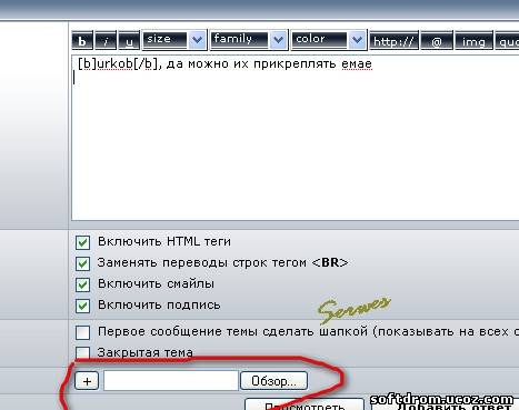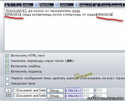 | Привет ! serwes, Вот видиш как хорошо что кнопка в подписи , просто так не пропустиш !!! И ещё , я уже не один раз просил - зделайте чтобы можно было прикрепливать к постам картинки ! Мне ети смайлы не очень , хочу свои вставлять !  Добавлено (11.06.2009, 18:38) --------------------------------------------- serwes, Вот ..., я сегодня уже 2 раза оценку поставил , захожу и сразу видно где куда и что , такую кнопку ни кто не пропустит ! Quote (urkob) зделайте чтобы можно было прикрепливать к постам картинки